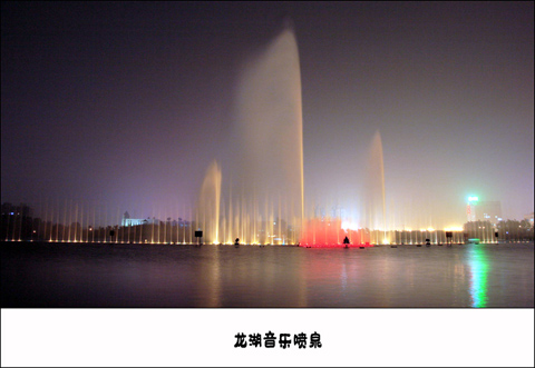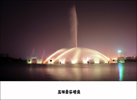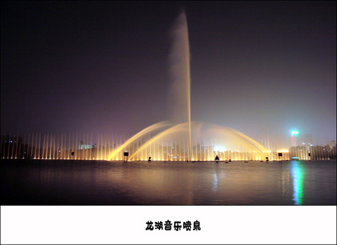 据了解,该喷泉基座占地5000平米,当夜幕降临,8.2万平米的湖面上将奏响音乐,在激光投射下,湖中的4200个喷头射出的水柱应歌而舞,当音乐进入高潮,108米的水柱将直冲云霄,硕大的铁制锥型体,在粗大水柱的强力冲击下腾空而起,在空中旋转并喷射出五条水龙,金龙吐水,给市民以视觉冲击,带来美的享受。