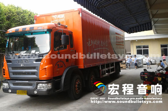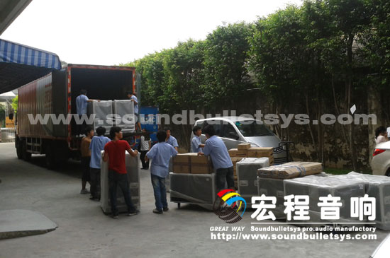 快讯:今日(9月10日)下午十五点四十,广州宏程音响工业有限公司工作人员,把中秋节前最后一批货物装车完毕顺利发出。