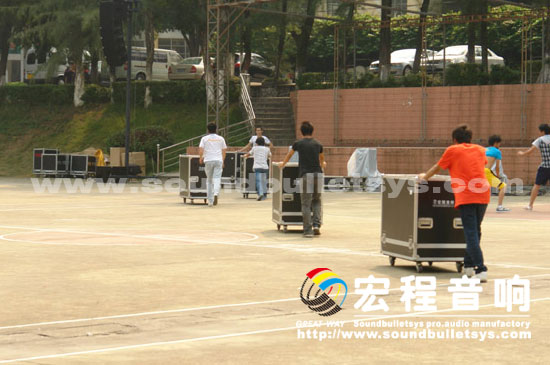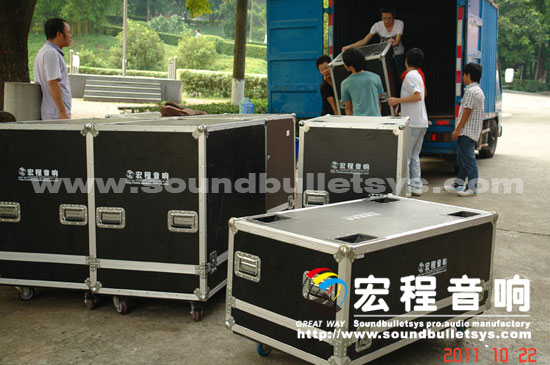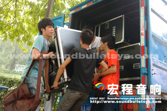 本网通讯员;锐意报道:22日上午,宏程音响再次为CA001培训班提供教学器材,目前四只全新十二寸线性、两只低音及相应配套功放经运达CA001培训班总部实操课程现场。
