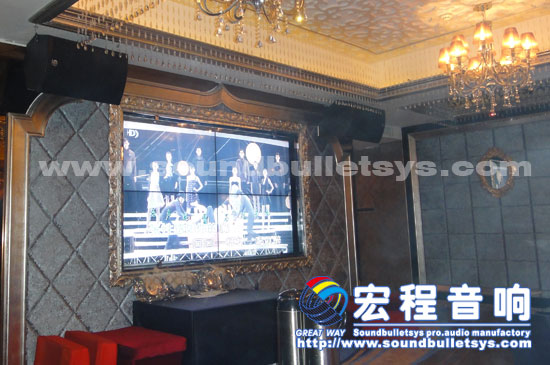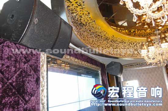 本工程采用,宏程2011年最新力作KH系列音箱,声必力(Soundbullet)KH系列音箱是一款最适合HI的包房及量贩式歌唱的包房音箱,同时它也能在慢摇酒吧内表现出色,此款音箱的高音平滑、中频过度平顺、低音丰厚、下潜度好。演唱时能轻松的表现人声的厚度。在包房内不需要加超低音箱就可以有超低音的感觉。