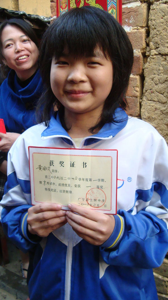 宏程爱心助学基金会受资助学生之一 黄国欣同学