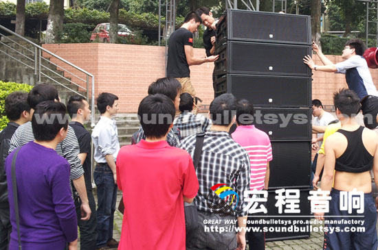 椐了解,本次训班大型演出组建及线阵列音响实操课程,由广州宏程音响工业有限公司为学员提供了全套声必力LA-12F线性扩声系统,供学员学习。
