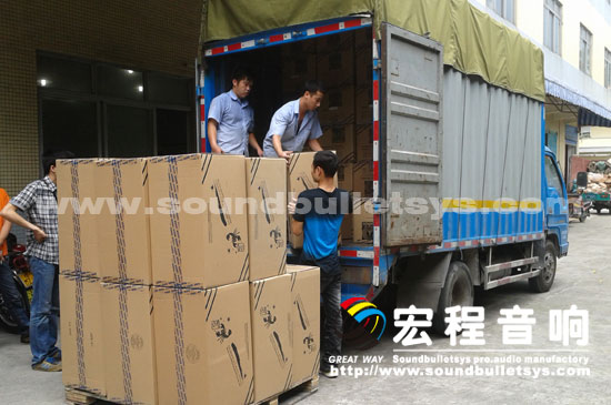 工程所需音箱正装车准备运往安装一线