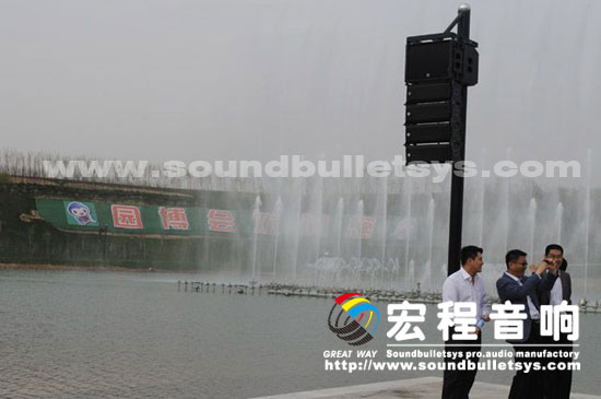 河北省园博园音乐喷泉水幕电影全天候扩声音响系统工程近日正式通过验收交付使用,本扩声工程采用了64只宏程音响声必力LA-820F全天候线性音箱、16只声必力LA-SUB115F超低音箱。分16组均匀分布在湖央四周,在功放上即采用了40台宏程音响声必力Pro系列功放。