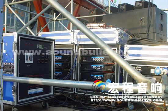 正式演出时,技术人员在舞台前方约150处,离开地面大约1.5,测试的平均声压级在95-105dB,瞬间高达110dB,整台晚会演出期间设备工作正常,演出获得圆满成功。