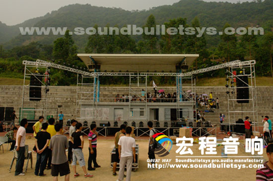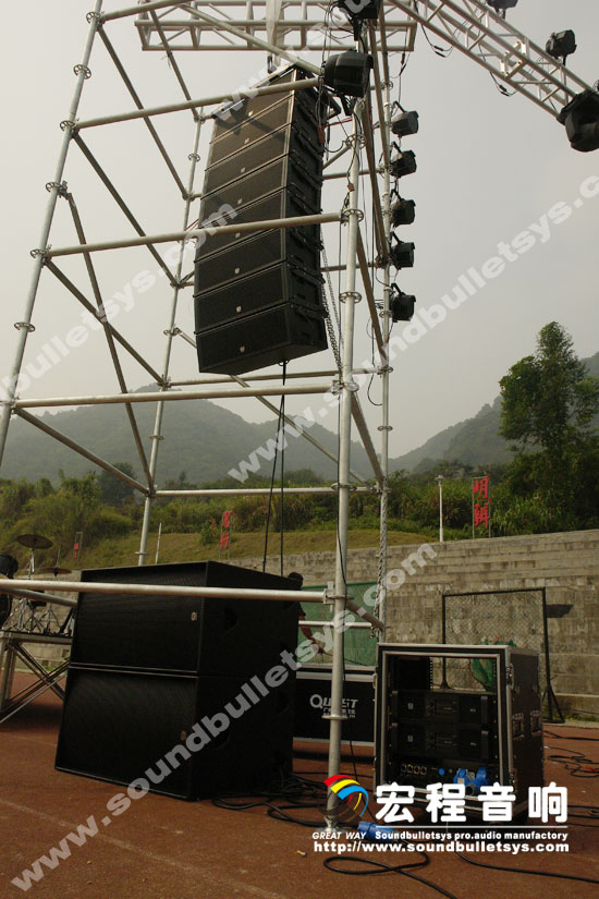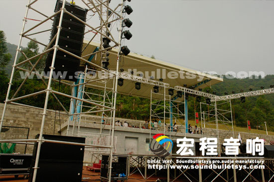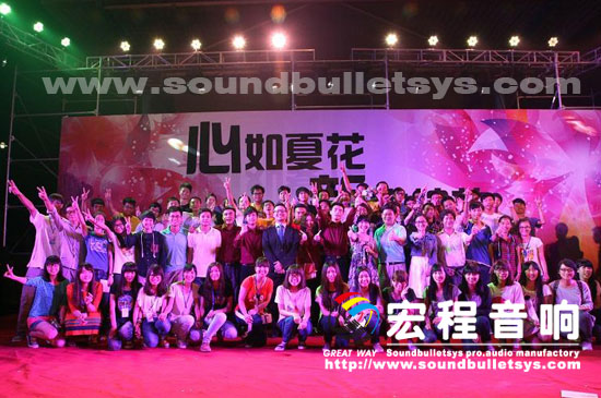 本次晚会由我司演出商广州市求索文化公司承接,现场扩声系统采用了广州宏程音响工业有限公司生产的声必力线性扩声统。