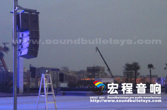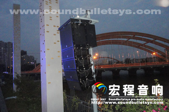 本次莆田海西正荣财富广场音乐喷泉工程,采用了25只宏程声必力全天候防水扩声音箱,分成5组分别布置在喷泉四周,功放上则采用了性价比较高的声必力DSP系列功放。目前系统经顺利通过专家组验收,系统运作良好。等待着11月25日盛大开放。