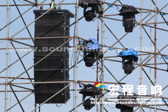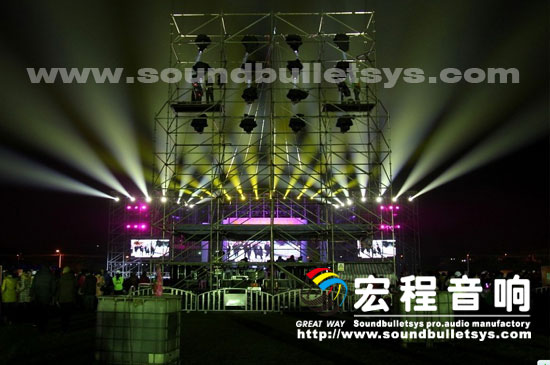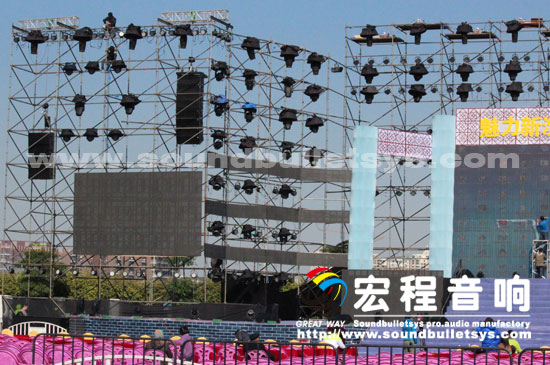 本次魅力新沙湾 盛世再启航——沙湾镇2013年元旦烟花晚会由广州宏程音响战略合作伙伴恒隆公司承接,现场使用了我司线性扩声系统