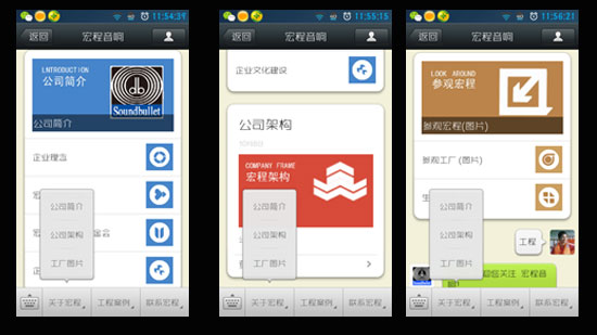 为了让客户更好的了解广州宏程音响,当前专题栏目设置为“关于宏程”,分三个二级菜单为客户提供服务:公司简介、公司架构、工厂图片。公司架构、工厂图片两个菜单都用图文并茂的形式详细介绍企业情况。