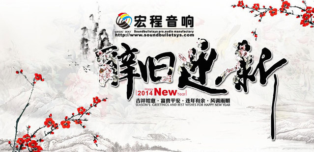 承继辉煌辞旧岁,锐意进取谱新篇。新年的钟声就要敲响,2014年的帷幕即将拉开。在这辞旧迎新的美好时刻,向在岗位上兢兢业业、辛勤耕耘的员工表示深深的谢意!向宏程新老客户表示亲切的问候!向一直以来不遗余力、关心支持宏程音响发展的社会各界人士致以真诚的祝福!