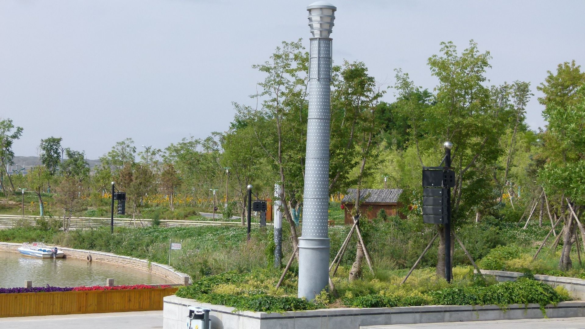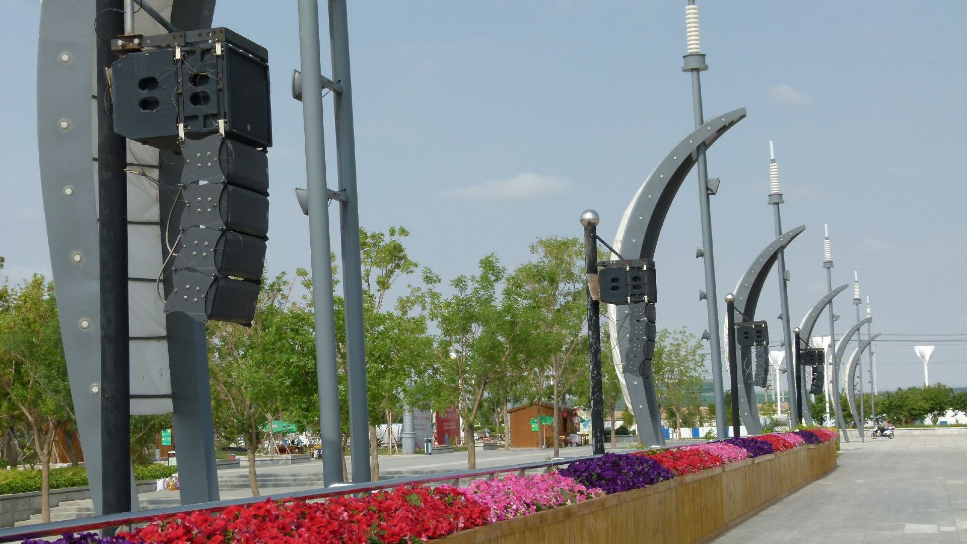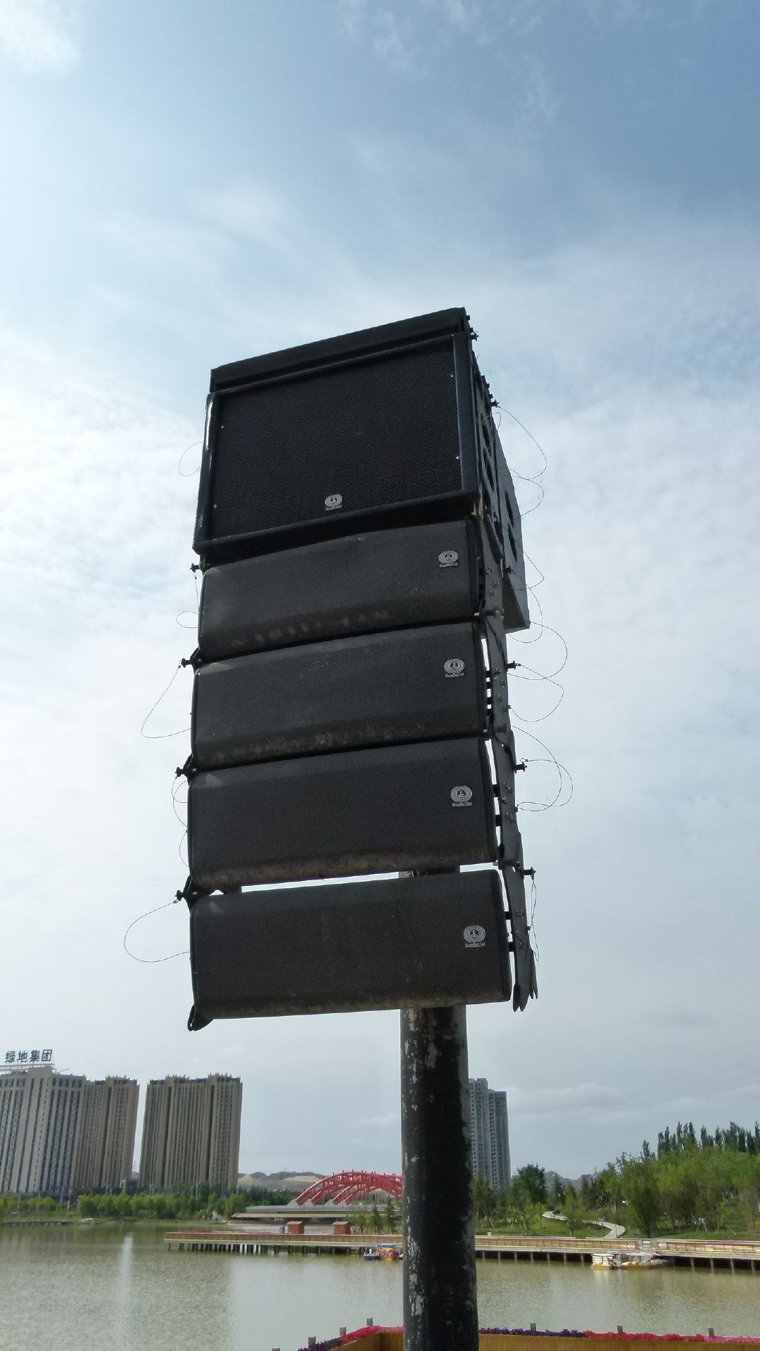 广州市宏程音响设备有限公司2011年承接了兰州新区音乐喷泉扩声音响系统,回访小组在现场回访中发现,当年承接的兰州新区音乐喷泉广场扩声音响系统现场的音箱箱体除部份箱的网罩有氧化情况外,木箱至今还较为完好,无裂纹,并且音响系统至今还保持运行良好,呈现令人惊艳的视听盛宴,湖水在音乐喷泉彩灯的照耀下显得异常美丽。