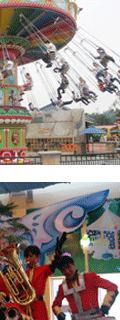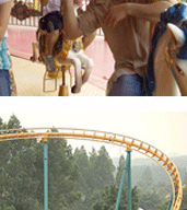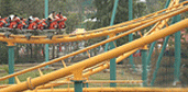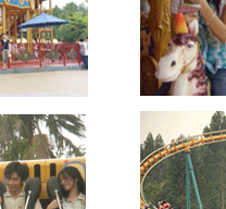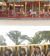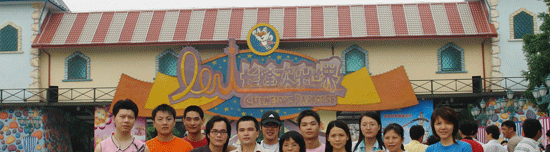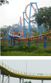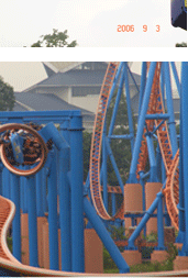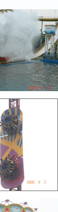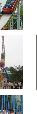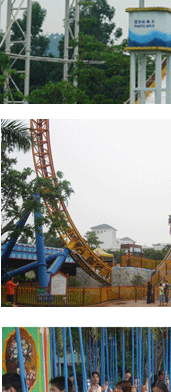 接下来,玩了两个不算刺激的游戏,'天旋地转'和'大力水手'!不过瘾,继续挑战!轮到'摩托过山车'了,东半球的首台摩托过山车,速度及其快!可以媲美F1赛车! 接着我们全队人员杀往丛林漂流,这是我感觉所有玩游项目最好玩的一个,船身呈圆形,八个人团团坐,出发罗!这一路上船随着水流的前进,拐弯,前进,路途中还有很多机关,好在我们有买雨衣,要不然就变成落汤鸡了!