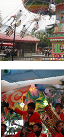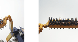 出发~~~在排队等候的过程当中,看到在半空的人像是在荡秋千,只是它会在半空中360度翻跟斗,还没玩就觉得好恐怖……漫长的等待中,恐惧与期盼感一直侵蚀着我,终于坐上去了,整个意识跟着它翻转,倒立,上下起伏,强大的离心力让人感到恐惧同时也刺激,尖叫声响砌云霄……
