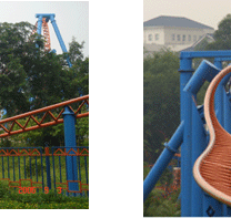 接下来,我们便直奔主题,去到尖叫地带好好刺激一番!尖叫地带汇聚了国内最顶级的游乐设备,也是全园最惊险、最刺激的主题区域,除十环过山车和摩托过山车外,园区内还有高达50米急速起落的大魔神,以及急速翻转加急速扭转的龙卷风暴。 进门之后沿着大马路往左边走,首先让我们发起兴奋欢呼声的便是进入吉尼斯世界记录的十环过山车了!接着便就到了“龙卷风暴”了,看看这玩意决定了就先从这刺激的东东开始挑战极限旅程。