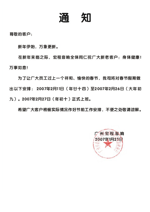 关于春节放假的通知