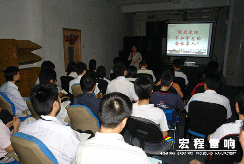 本网通讯员陈达开报道:为了进一步提高销售人员的管理和服务理念,促进宏程公司企业文化建设的开展,以适应不断变化的市场经济环境能力,全面推动公司各项工作上一个新台阶,宏程音响于2007年5月25日至30日在销售部产品展示大厅,举办了一期为期五天的销售人员企业文化建设知识培训班。