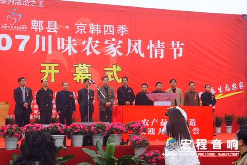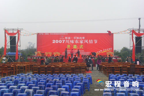 我司成都Eastsound(怡声)代理商--成都新时代演艺设备公司承接了本次郫县•京韩四季2007年川味农家风情节开幕式现场扩声音响系统工程,现场扩音系统采用了我司16只 Eastsound(怡声)LA-10F 线性音箱,和8只Eastsound(怡声) Trojan-2679低频音箱,在功放上还采用了我司4台Eastsound(怡声) C5 功放和 4台 Eastsound(怡声) C4功放 。