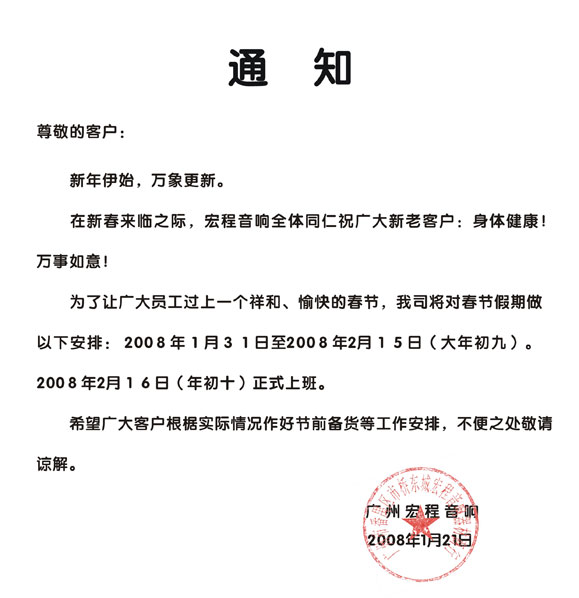 | 关于2008年春节放假的通知 |