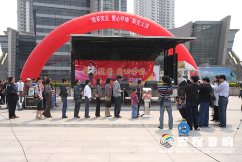 本次情系灾区爱心呼唤赈灾义演活动现场扩声音响系统由我司河北省秦皇岛演出合作伙伴-----秦皇岛再兴演艺有限公司承接,本次扩声音设备如下: