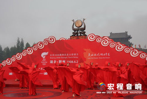广州宏程工业有限公司代理商----武汉鑫宏博舞台设备有限公司承接了本次2008奥运火炬接力荆州站传递活动现场扩声工程.