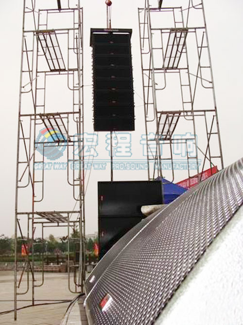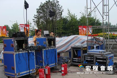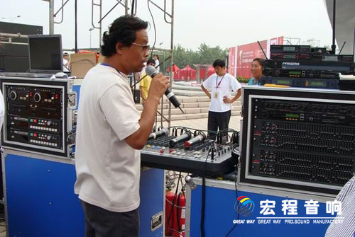 本次工程采用了16只宏程音响Eastsound(怡声)LA-10F线性音箱 8Eastsound(怡声) Climax-B10超低、4Eastsound(怡声) MA-15  返送和12ES系列功放,话筒上采用了舒尔 U24D 两只加天线放大器(主持人用)森海塞尔 100系列四只加天线放大器(两只热备份 两只冷备份)北极电容4只(领导讲话用): 音源 天龙4000CD一台 天龙MD两台 笔记本电脑一台1调音台声艺LIVE4.2 16路音响技术超级论坛.周边 YAMAHA700效果器两台 aliss压限器一台 dbx均衡4道后级。