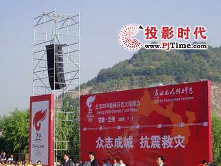 广州宏程音响工业有限公司Soundbullet(声必力)代理商――兰州新时代音响装饰工程有限公司承接了本次奥运圣火传递兰州站现场扩声系统工程。本次扩声系统工程,音箱方面采用了16只广州宏程音响公司最高档次的Soundbullet(声必力) LA系列线阵音箱,而在功放的采用上则采用了性能极其稳定的PRO系列功放。