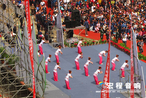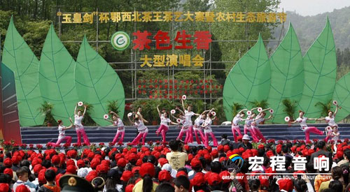 本次“玉皇剑”杯鄂西北茶艺大赛暨农村生态旅游节各项活动现场音响扩声音系统均采用,广州宏程音响工业有限公司扩声系统。