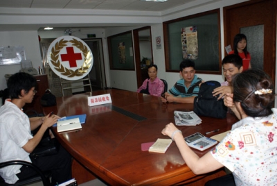 楼下正在装修,红十字会在8楼的一个小办公室里