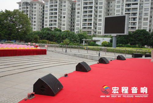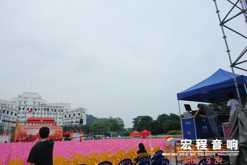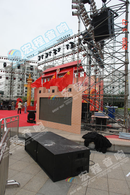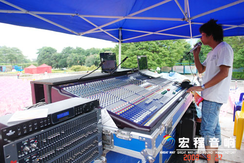 广州宏程音响工业有限公司,承接了本次晚会的扩声工程。晚会现场采用了8只声必力(SoundbulletLA-12F线性和4只声必力(SoundbulletCB-1超低音箱,在返听上则采用了4只广受欢迎的声必力(SoundbulletMA-15音箱.宏程音响09年度主打精品声必力(SoundbulletPRO系列功放,不负众望完美的胜任了本次扩声任务.