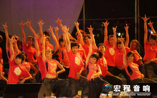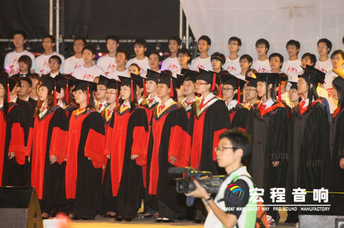 开场锣鼓、管乐、民乐合奏《欢庆》,拉开了晚会欢快、喜庆的序幕。“为了绿色的希望,我们汇聚在科学的殿堂……为了金色的理想,我们遨游在知识的海洋!”台上台下近万人一同唱响校歌《金色的理想》,激昂豪迈的歌声在广场上空回荡,如石破天惊的雷响,如激昂跌宕的大浪,掀起了晚会的第一个高潮。一曲铿锵的校歌将华南农大学人敢于立下金色的誓言,敢于播种绿色希望的勇气展露无疑。当校歌的旋律还在会场萦绕时, “华农,我爱你!”的高呼又彼伏此起,不知道润湿了多少华农人的眼眶。