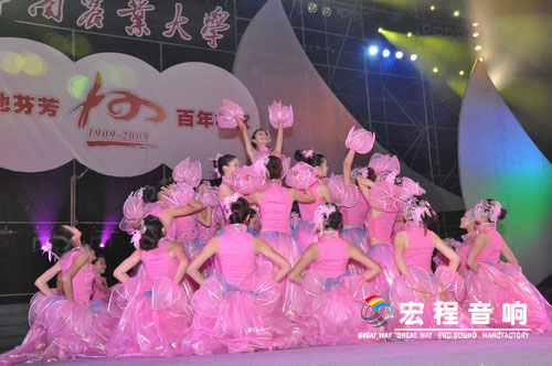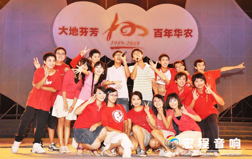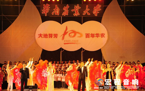 历史风雨,铸就高等农业教育百年伟业;时代传人,续写华南农业大学世纪华章!11月8日晚上19:30,华南农业大学东区运动场锣鼓喧天、礼花绽放,百年校庆文艺晚会“大地芬芳”在这里激情上演,盛大开幕。前来参加上午庆典大会的校内外嘉宾以及党政领导、校友代表、部分国际友人与在场的近2万余名师生一同兴致勃勃地观看了演出。许多学生守在宿舍观看了华南农业大学100周年庆典网络直播的晚会盛况。