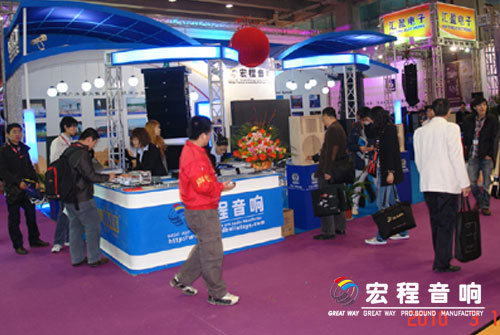 广州宏程音响工业有限公司也参加了本次音响展会,宏程音响在本届展会上展位位于展会15.1馆的B15号位置。展会上,宏程公司展出了最新研制出的产品HK系统包房音箱和宏程十寸和十二寸LA线性音箱。展会上展出的产品均受到国内外客户以及业内人士好评。展会期间共签定国内外三综定单共计八十多万元,并和众多客商达成了初步合作的意向!