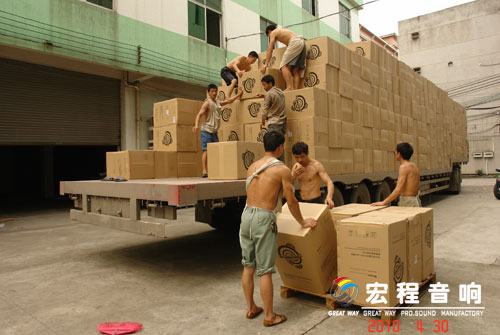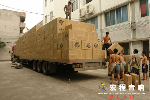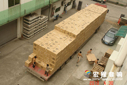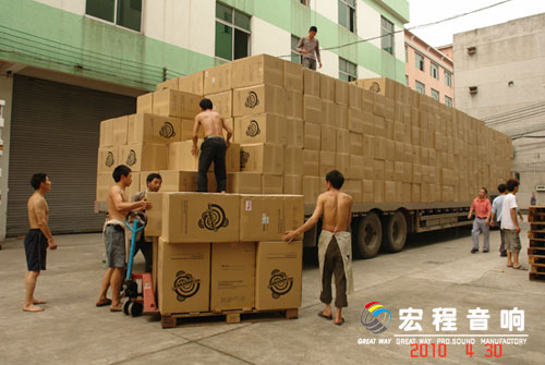本网通讯员锐意报道:记者近日在广州宏程音响设备有限公司了解到,宏程公司中标某省政府采购订单,首批1200只音箱、600台功放和一批配套周边扩声设备经装车发往目的地交付使用。第二批300只音箱、150台功放也正在紧张生产中。有关最新情况本网将第一时间跟踪报道。