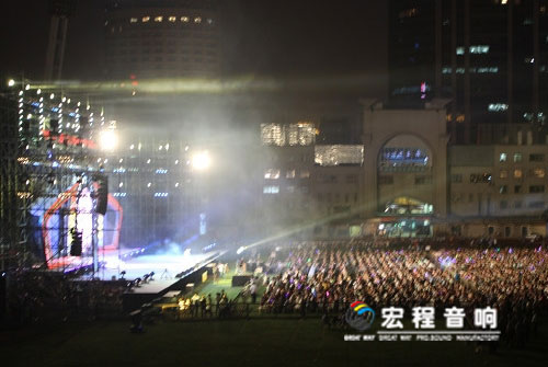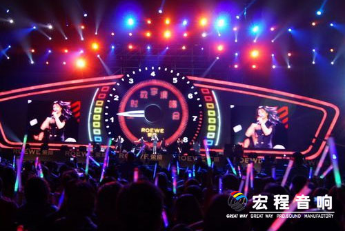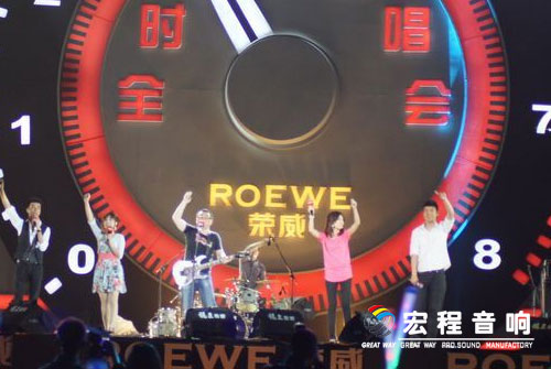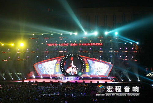 本次“博爱中国仁爱传递”荣威80、70、550全时数字演唱会,现场采用了广州宏程音响工业有限公司线性扩声系统。