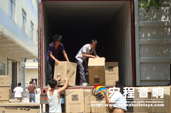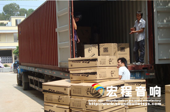 本网讯:(通讯员 锐意 摄影 老张)金秋九月,丹桂飘,广州宏程音响新建科技工业园内一片繁忙的景象,生产车间内的音箱以及零部件几乎挤满了厂房空间,室外搬运部工人正忙着,把产品向集装箱里搬运。