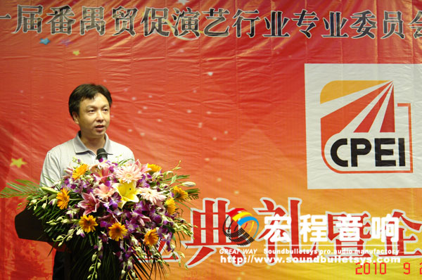 会议由番禺贸促会副会长林潮荣主持,大会选举产生了第一届番禺贸促演艺行业专业委员会的主任、副主任、秘书长,我司总经理当选副主任。