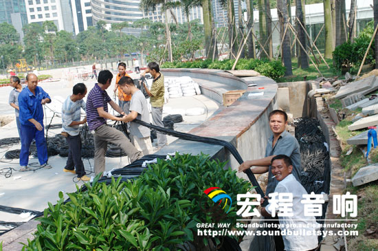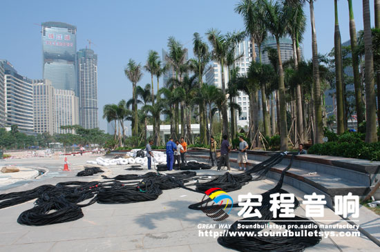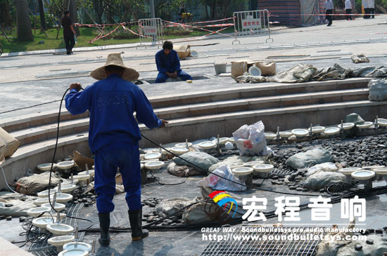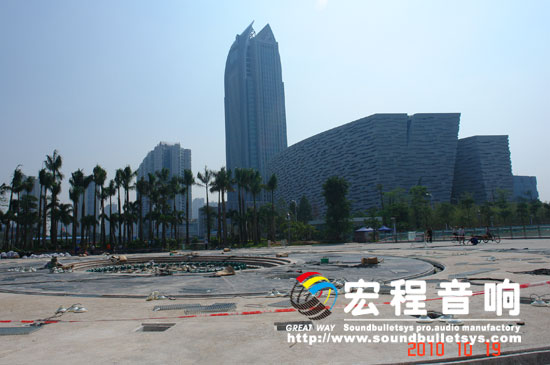花城广场音乐喷泉位于双塔广场,是花城广场最具亮点和特色的地方,广场大型喷泉占地面积约4万米,喷泉设计最高射程为65米,广州花城广场音乐喷泉全天候音响扩声系统采用宏程声必力音响扩声音响系统产品。