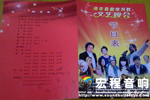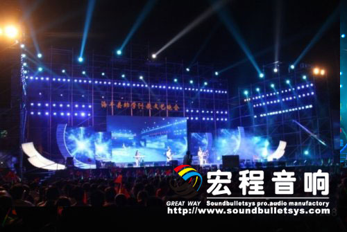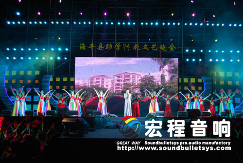 本次海丰县助学兴教文艺晚会现场扩声系统采用了广州宏程音响声必力线性扩声系统。