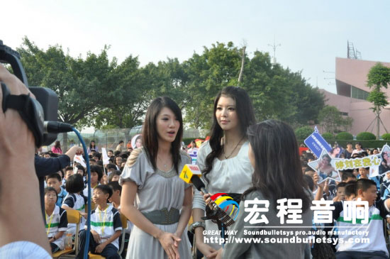 距离举国欢腾的第16届广州亚运盛会还有二十多天,四处已经弥漫着喜庆的气氛。第16届广州亚运歌手邓雯心、刘亭婷携手广东知名影音视全能艺人张曼莉10月21日,22日分别来到南村中学和南村侨联中学,演唱多首亚运主题歌曲,并与学生们进行亚运知识活动,并现场教唱亚运歌曲《日出东方》,点燃全城的亚运激情。
