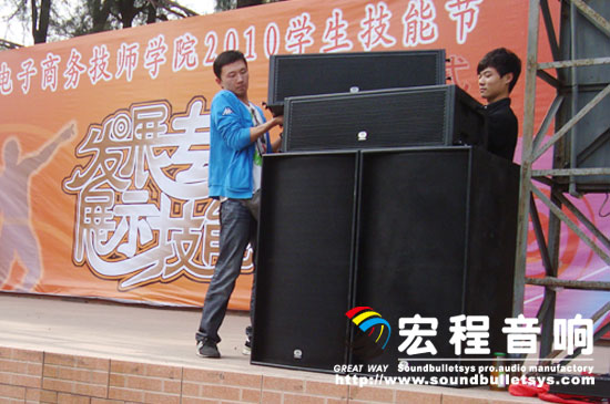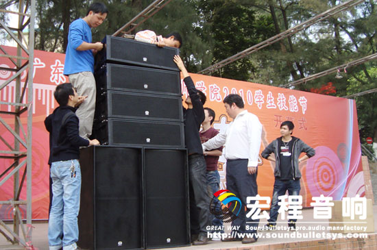 本次训班大型演出组建及线阵列音响实操课程,广州宏程音响工业有限公司为学员提供了全套声必力LA-10F线性扩声系统,供学员学习。