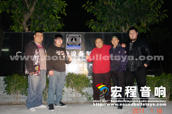 2011118,著名的大块头乐队成员到访我司,公司总经理、业务部主管陪同大块头乐队成员参观了公司的办公室、会议室,样品展览室、生产车间、试音室车间。