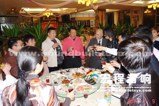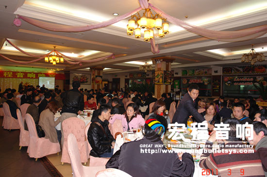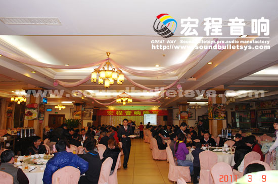 3月9日晚19:00,广州宏程音响答谢晚宴于番禺金怡酒店宴会厅盛大举行,此是继2月28号“广州演艺设备展(GET SHOW)”客户答谢会之后的又一次盛会。此次晚宴是互动论坛形式贯穿始终,体现出了宏程音响公司对客户的真挚感谢与祝福之情。