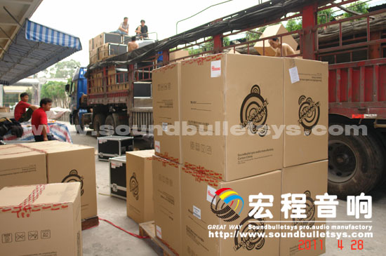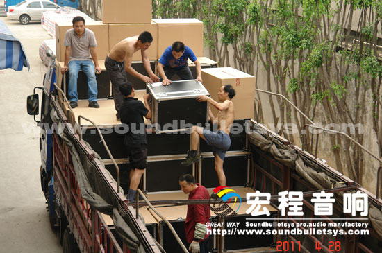 428日上午,由广州宏程音响工业有限公司中标的东北某省政府采购音响系统正式装车运往目的地交付使用。此次采购的500多套扩声系统将全部作为基层扩声设备服务于社会。