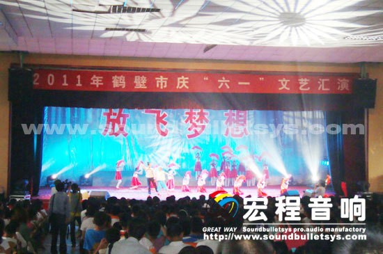 本次“2011鹤壁市庆六一文艺汇演”现场扩声音响系统均采用广州宏程音响声必力扩声音响系统。