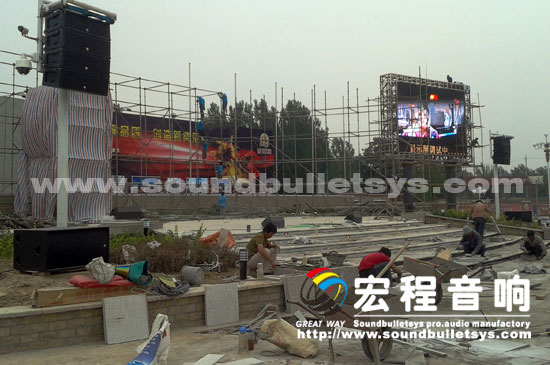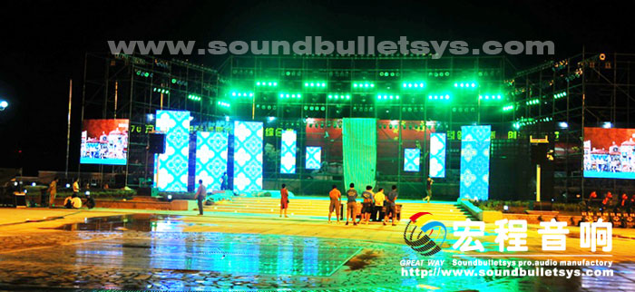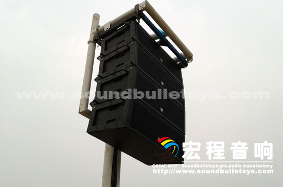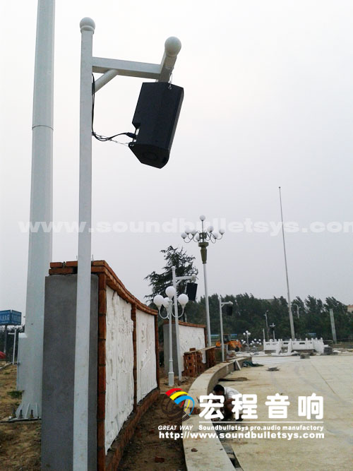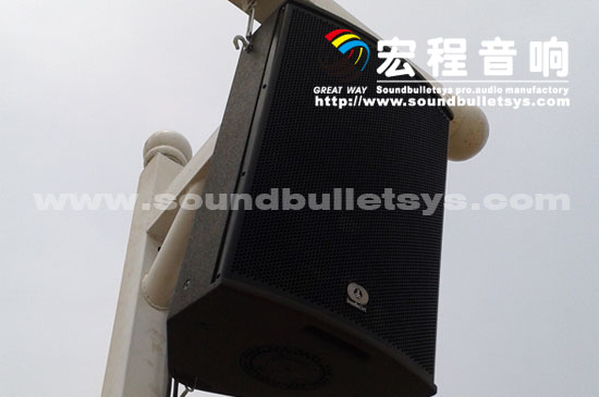 本工程在广场中心舞台两边,分两组吊挂了8只声必力LA-10F线性音箱,和2只声必力CB-2超低音箱作为主扩,并在广场四周均匀设置了14只声必力EF-312全频音箱进行辅助扩声。使得广场四周声压均匀,音色清翠通透。