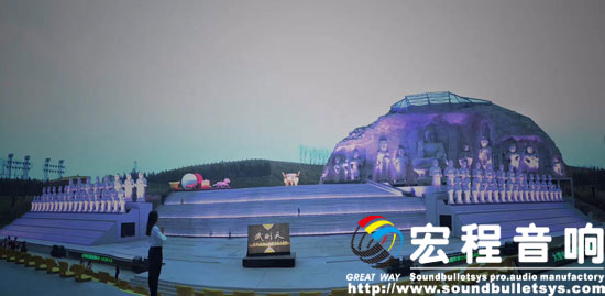 将佛教文化、石窟文化以及唐朝文化融为一体,现场士兵俑、侍女佣等造型高达8米。
