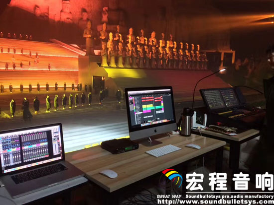 基于场地和剧情的特殊要求,主创团队在考虑户外音响设备时,经严格筛选,最终选择宏程音响公司的Soundbullet(声必力),整个舞台使用了超过120只音箱,有力保证整场演出的高品质音效。