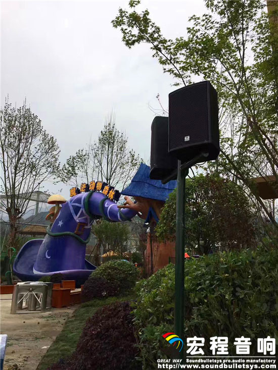 在这个占地约300亩,总投资近20亿的主题乐园里,根据扩声需求设计,采用了户外全天候音响扩声系统宏程音响的产品,宏程人用专业与服务为都江堰第一座综合型主题乐园助力。