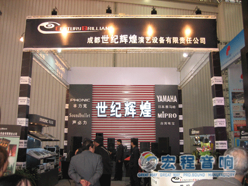 椐了解,广州宏程音响Soundbullet(声必力)音箱四川省总代理----成都世纪辉煌演艺设备有限责任公司,也参加了本次的览会,并在展会上重点展出了,Soundbullet(声必力)06年度主打高科产品,DX系列音箱。 开展的第一天,Soundbullet(声必力) DX系列音箱,便以其完美无暇的音质赢得众多海内外音响同行与参会观众的一致高度好评。